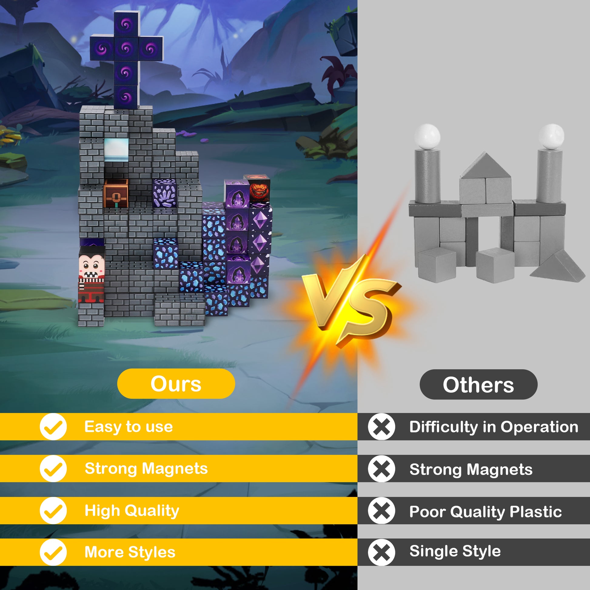 π§²[Build My Magnet World - Lava Cave World]Get ready to simulate building a cave in "" Lava Cave"" with this new magnetic cube set, imagine the amazing stories that could happen in Lava Cave World, and start your Lava Cave world adventure! Magnetic building blocks allow your child to travel to a world full of wonderfulRoad Track or a fantasy world full of possibilities! From simple to challenging builds, experience the fun of role-playing and dress-up toys! Let your children's imagination run wild in our magnetic open-ended toy set!π‘[Perfect Sensory Toys for Kids]Magnetic building blocks provide children with a great way to learn, play and increase their confidence while giving them a better understanding of the world of construction. When playing with the blocks, the blocks will also rustle like little bells, which will attract the attention of toddlers and make them happy. Construction and building block toys unlock many skills for children. With this magnetic building block to build, rotate, destroy and rebuild, it helps to develop children's creative thinking, attention and patience, hand-eye coordination motor skills, cooperation skills, spatial and motor skills!π[Toy Magnetic Set for Toddlers and Beginners]Unlike other magnet toys on the market, our magnetic cube set has super strong internal magnets, which makes it easier for toddlers over 3 years old to stick the cubes together and make the structure sturdy. The rounded edges and suitable size will not hurt small hands. The perfect toy can help children to have a deeper understanding of the world of structure and understand magnetism. Recommended toy gift for toddlers and children aged 6-8 years old.π[Creative Fun Learning]Construction and building block toys unlock many skills for children. Building, rotating, destroying and rebuilding with this magnetic building block helps promote children's creative thinking, attention and patience, cooperation, space and motor skills. Comes with a creative manual to guide and inspire them to explore the magnetic dream world. It is a fun solo activity or activity with friends, and a great alternative to screen time.π[Best Gift for Kids]This is a children's toy suitable for classrooms, toddlers, preschoolers, teenagers, and is popular with boys and girls over 3 years old. Therefore, even young children can imagine and create the buildings of their dreams. Kids will have fun with this magnetic tile and learn through playing. A perfect educational gift for birthdays, Christmas, Children's Day, STEM and school activities. Make it the best choice for parent-child interactive games on weekends!