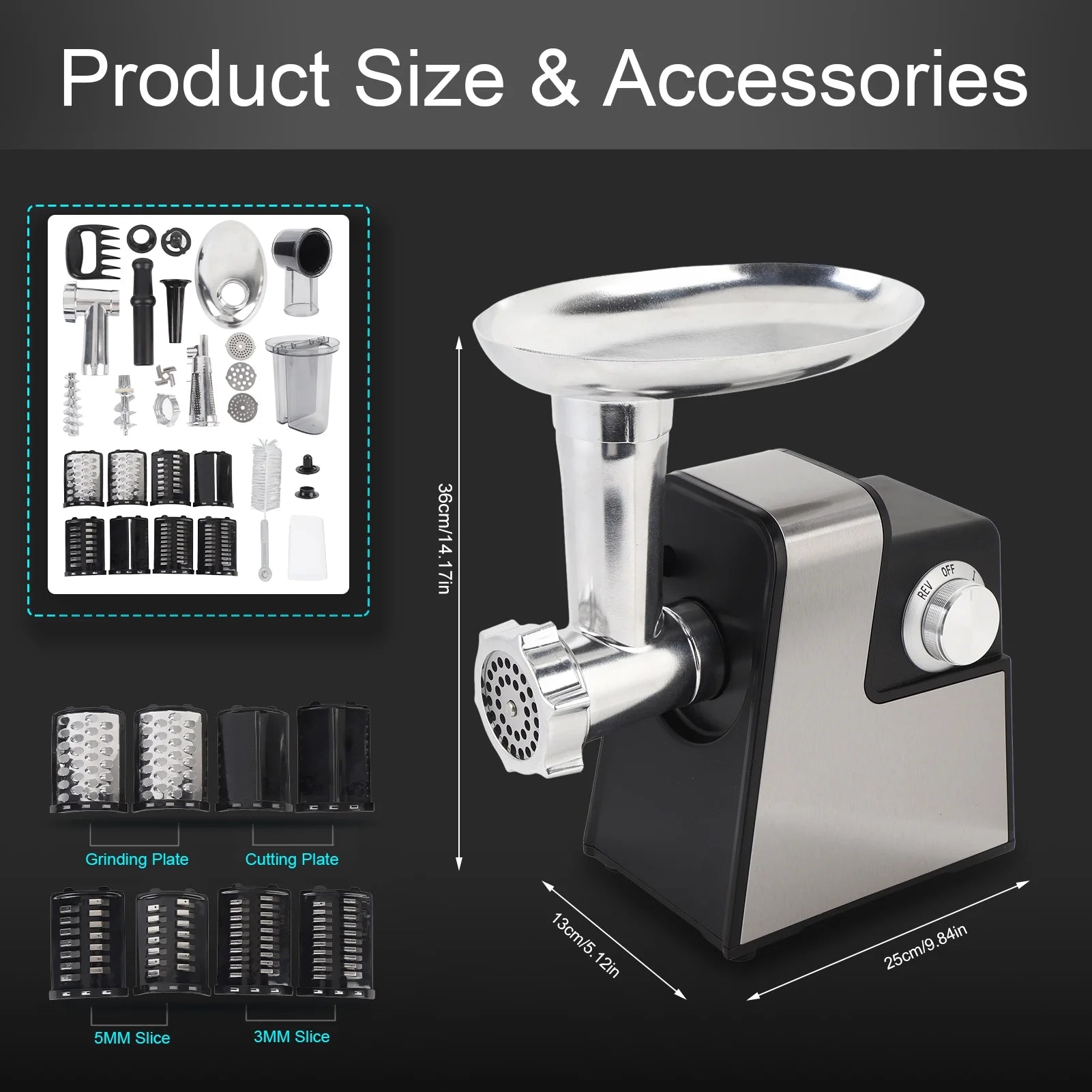 Heavy Duty 5 in 1 Electric Meat Grinder, 2800W Max, Sausage Stuffer, Juice Extractor, Kubbe Kit , 3 Stainless Steel Grinding Plates, 5 Pounds/Min