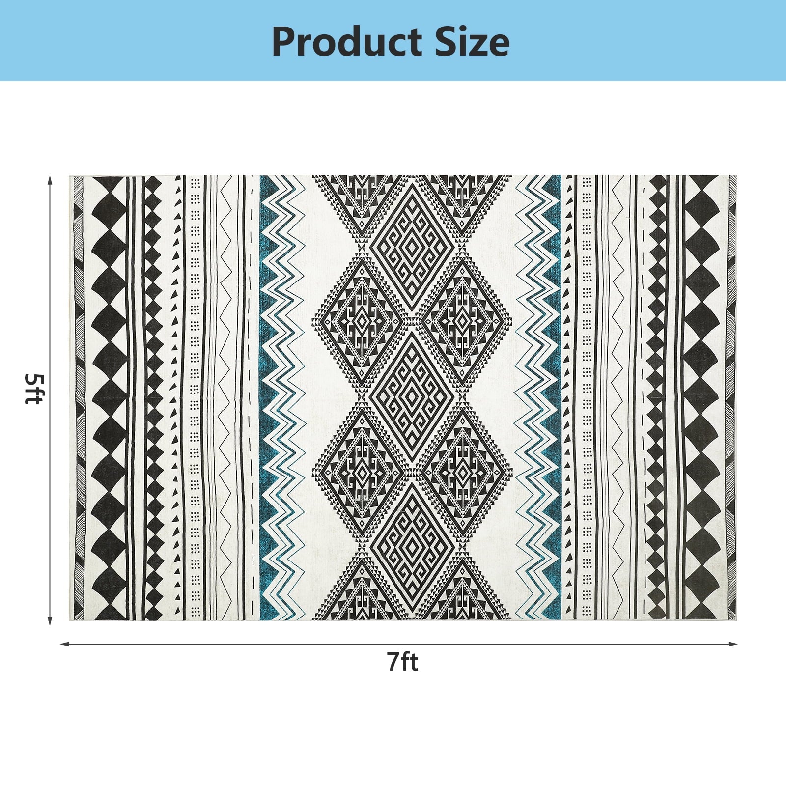 Modern Area Rug 5x7 Non Slip Hallway Runner Rug, Low Pile Machine Washable Rugs for Entryway, Hallway, Kitchen And Corridor,Light Blue Brown