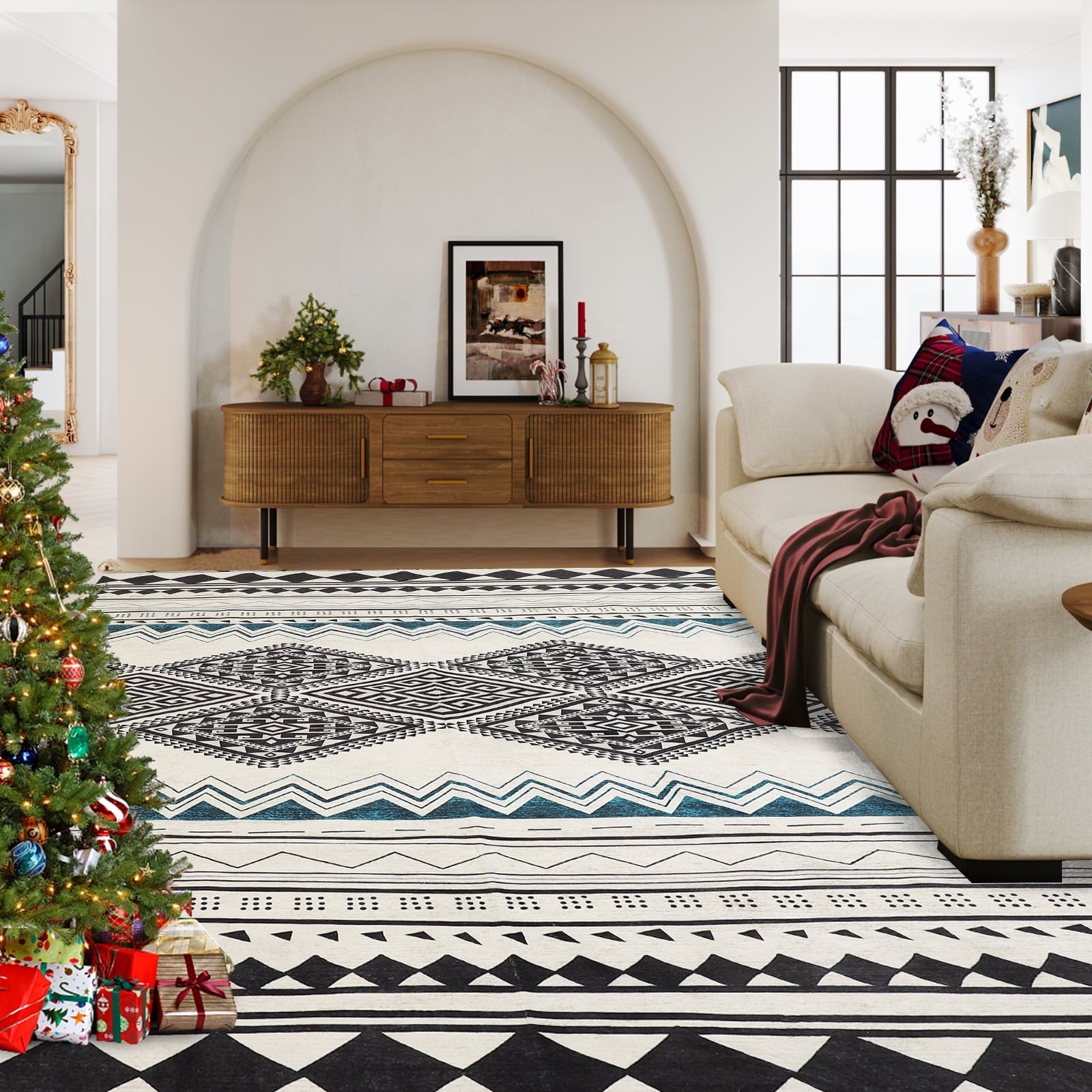 - 【Durable Rugs】: Discover the long-lasting resilience of our short-pile rugs, which are made with dense machine-woven weaves and carefully crafted to withstand high-traffic areas. The sturdy edges prevent wear and tear, and the stain-resistant tones are very practical, making it a rug that perfectly combines style with lasting quality.